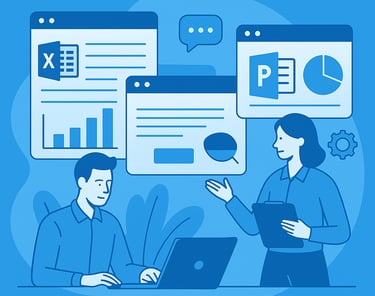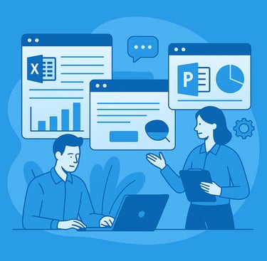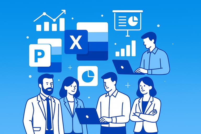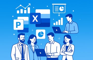 Nos experts utilisent la suite Microsoft Office au quotidien depuis plus de 5 ans, et ont affûté leur méthode en accompagnant PME, entrepreneurs, cadres et dirigeants vers une maîtrise opérationnelle d'Excel, Word et PowerPoint.